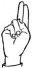 На ћирилици написано БУДИМИР ЧЕКОВИЋ састоји се из 14 слова [?]. Исписано ћириличном једноручном азбуком за глувонеме: